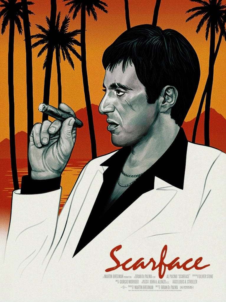 类似阿尔·卡彭充满戏剧性的生涯历史,与之关联的衍生作品也都是基于移民者和美国梦的故事。当然,还有他那标志性的伤疤符号,和似乎永远都绕不开的黑帮传奇背景经历。