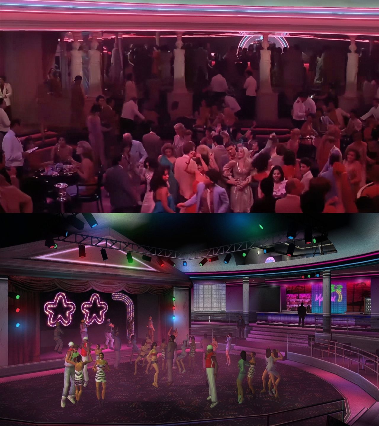位于罪恶角的马里布夜总会 (Malibu Club)同样借鉴自影片《疤面煞星》中的巴比伦俱乐部 (The Babylon),但后者内部取景其实是在搭建的摄影棚中完成,所以并没有可以考据的现实原型。