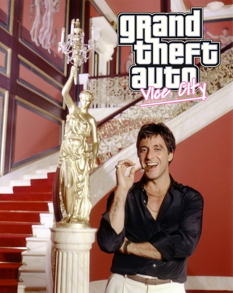 2002年由北方之星开发制作, 以及摇滚之星负责发行的《侠盗飞车:罪恶都市》创作改编于1983年的《疤面煞星》,两者都是将二十世纪八十年代的佛罗里达州迈阿密市作为故事舞台。