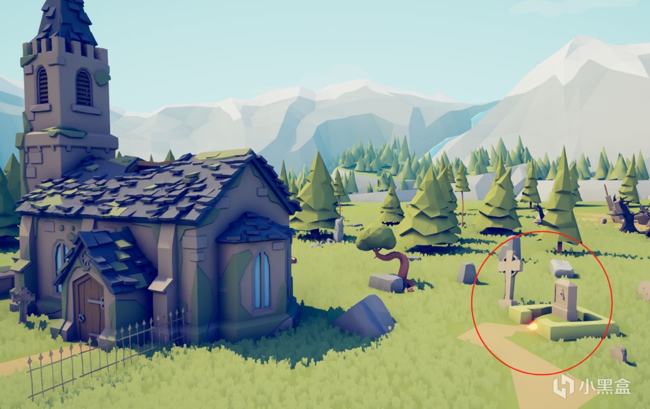 地图中央教堂的右侧墓碑