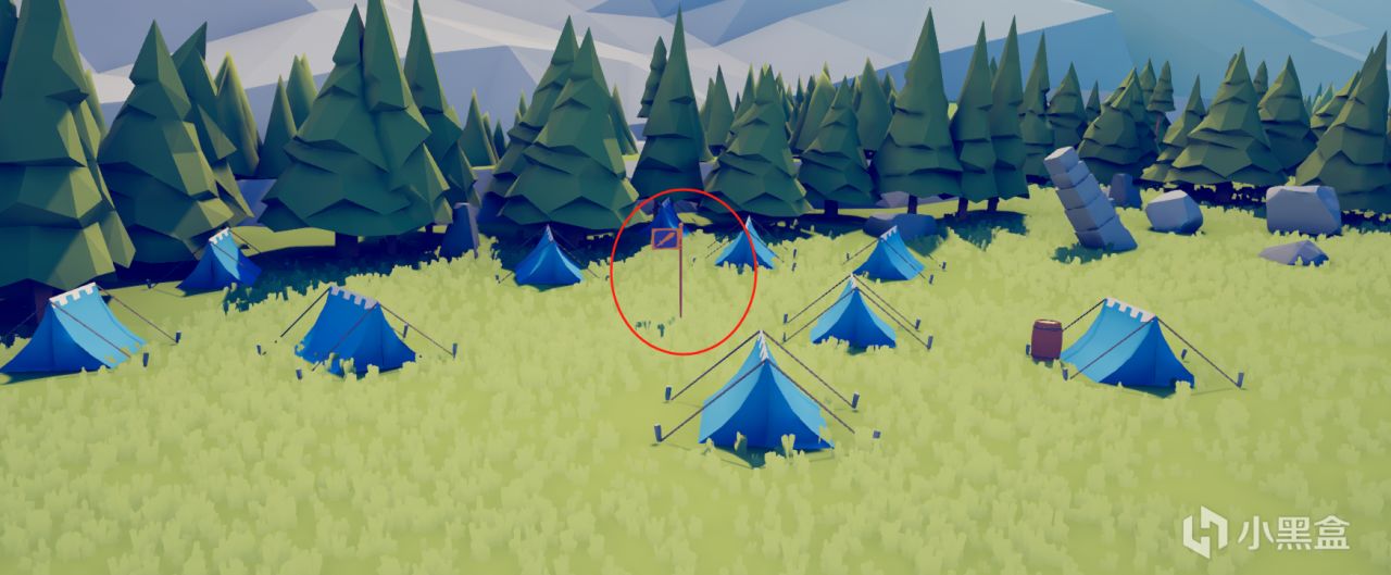 左侧蓝色帐篷区域,有一个明显不太对劲的旗帜
