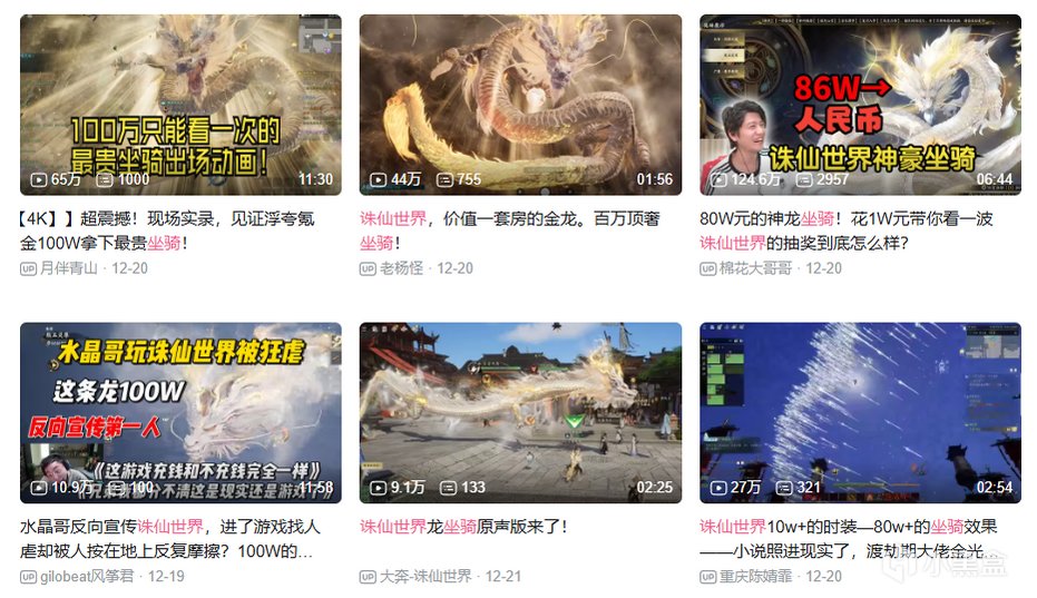 赚煤老板的钱,还得看完美。当看到小破站诛世播放量最高的几个视频,都是关于这条龙的,我恍然大悟,这不就是宣发最好的噱头吗?