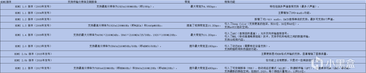 HDMI(高清晰度多媒體接口)是一種用於傳輸未壓縮音視頻數據的接口技術標準,自2002年首次發佈以來,經歷了多次版本更新。以下是各個主要版本的詳細介紹: