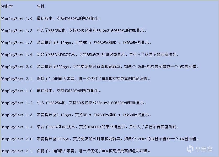 DisplayPort是一種由視頻電子標準協會(VESA)開發的數字視頻接口標準,旨在替代傳統的VGA、DVI和FPD-Link接口,滿足高分辨率、高帶寬視頻傳輸的需求。以下是各個主要版本的詳細介紹: