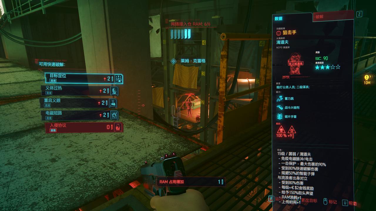在右手边还有一位狙击手,这里推荐先套一个【重启义眼】之后再使用消音类型的手枪或者飞刀快速干掉。