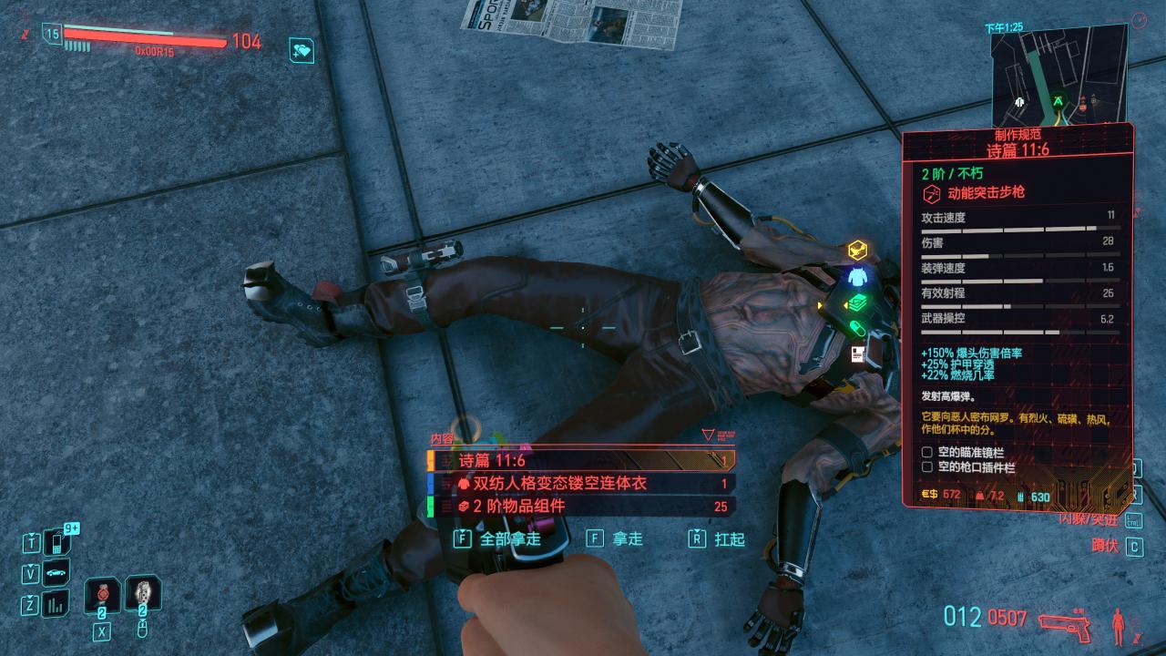 我们通过【潘兴街】传送点来到地图位置,这里有一个【NCPD的悬赏任务】,击败里面的女头目就会掉落这把武器的【制作规范图纸】。