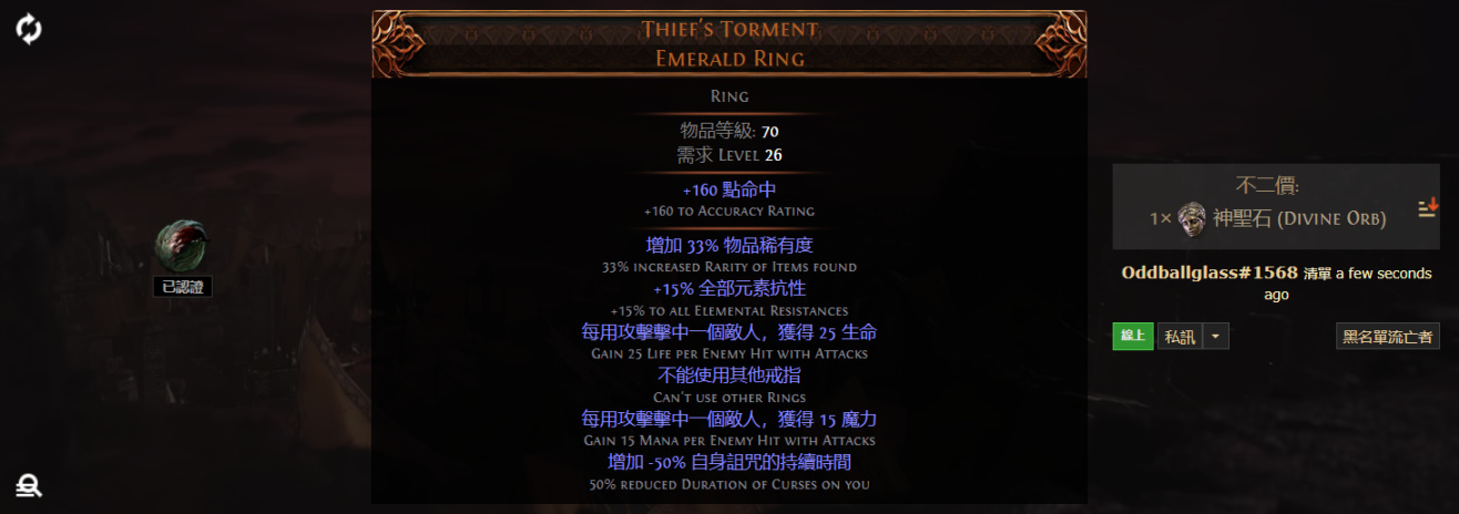 Thief's Torment Emerald Ring 竊罪 綠寶石戒指