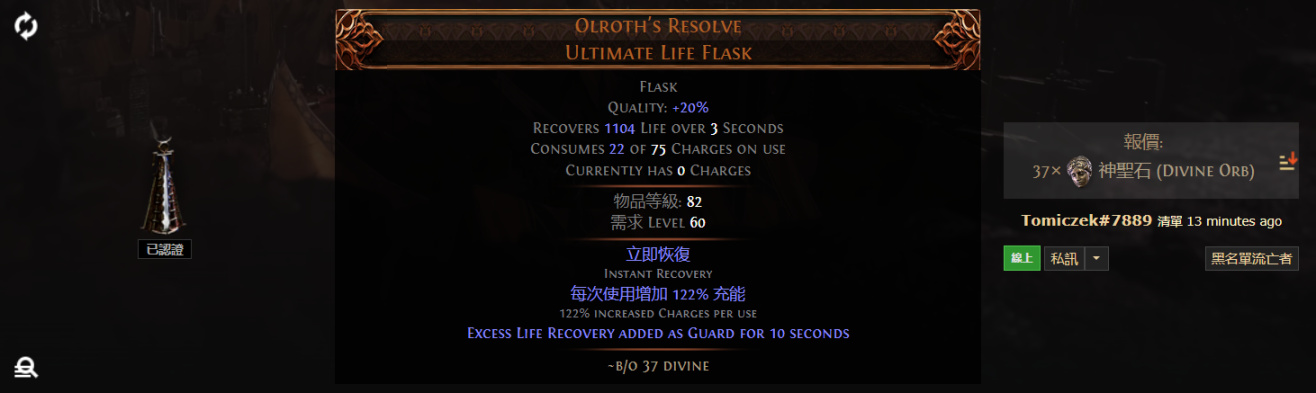 Olroth's Resolve Ultimate Life Flask 奧爾羅斯的決心 終極生命藥劑