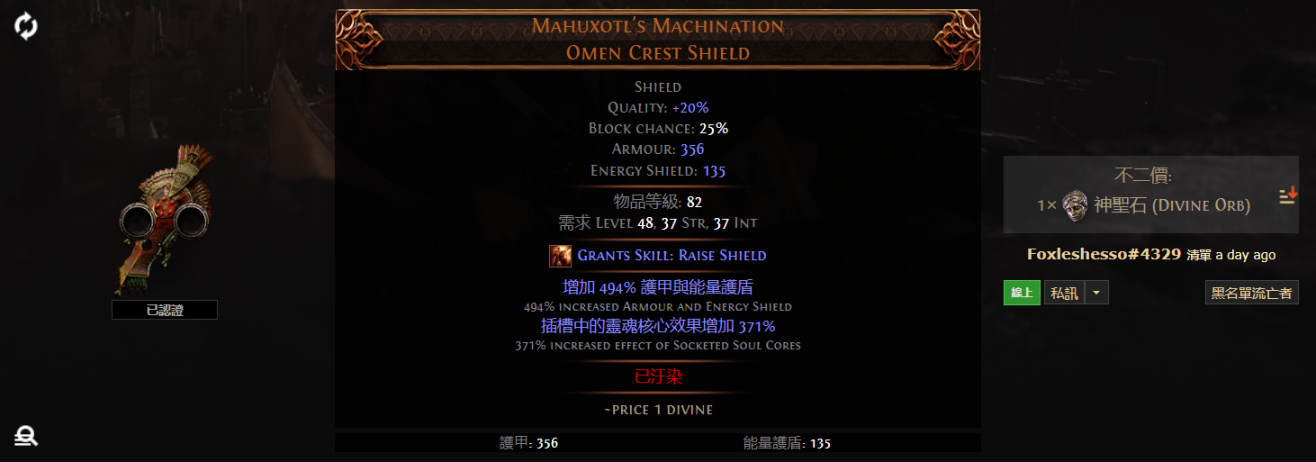 Mahuxotl's Machination Omen Crest Shield 瑪哈薩多的陰謀 預兆紋章盾