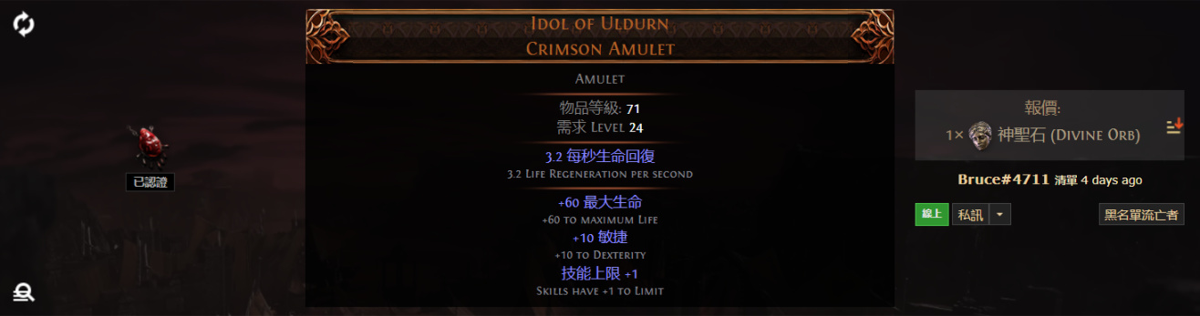 Idol of Uldurn Crimson Amulet 奧敦塑像 赤紅項鍊