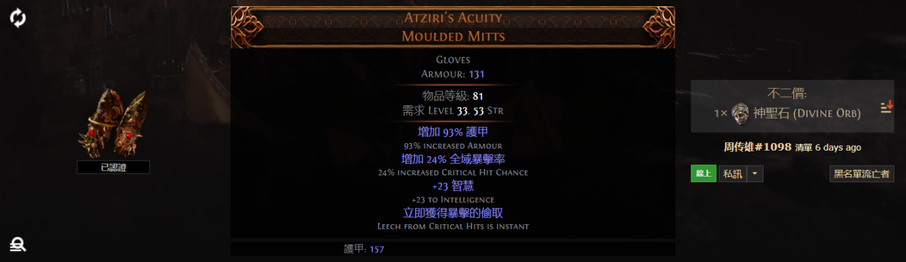 Atziri's Acuity Moulded Mitts 阿茲裏的捷思 鑄模長手套