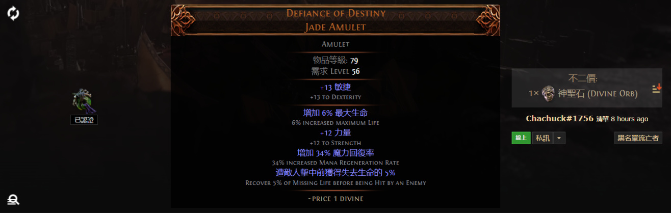 Defiance of Destiny Jade Amulet 拒絕命運 翠玉護身符