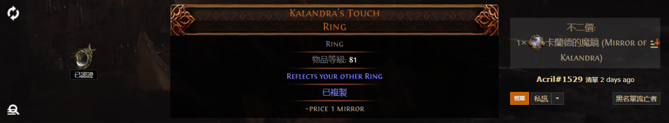 2. Kalandra's Touch Ring 卡蘭德之觸 戒指
