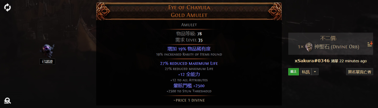Eye of Chayula Gold Amulet 夏烏拉之眼 帝金護身符
