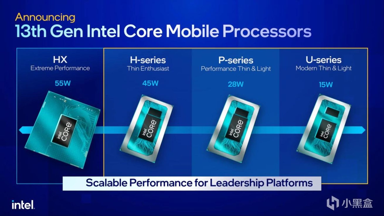 在本次CES上,英特尔带来了四个规格的CPU系列,均为13代移动端CPU,涵盖了整个笔记本电脑领域,有旗舰HX系列,适合游戏的H系列,轻薄的P系列和低功耗的U系列