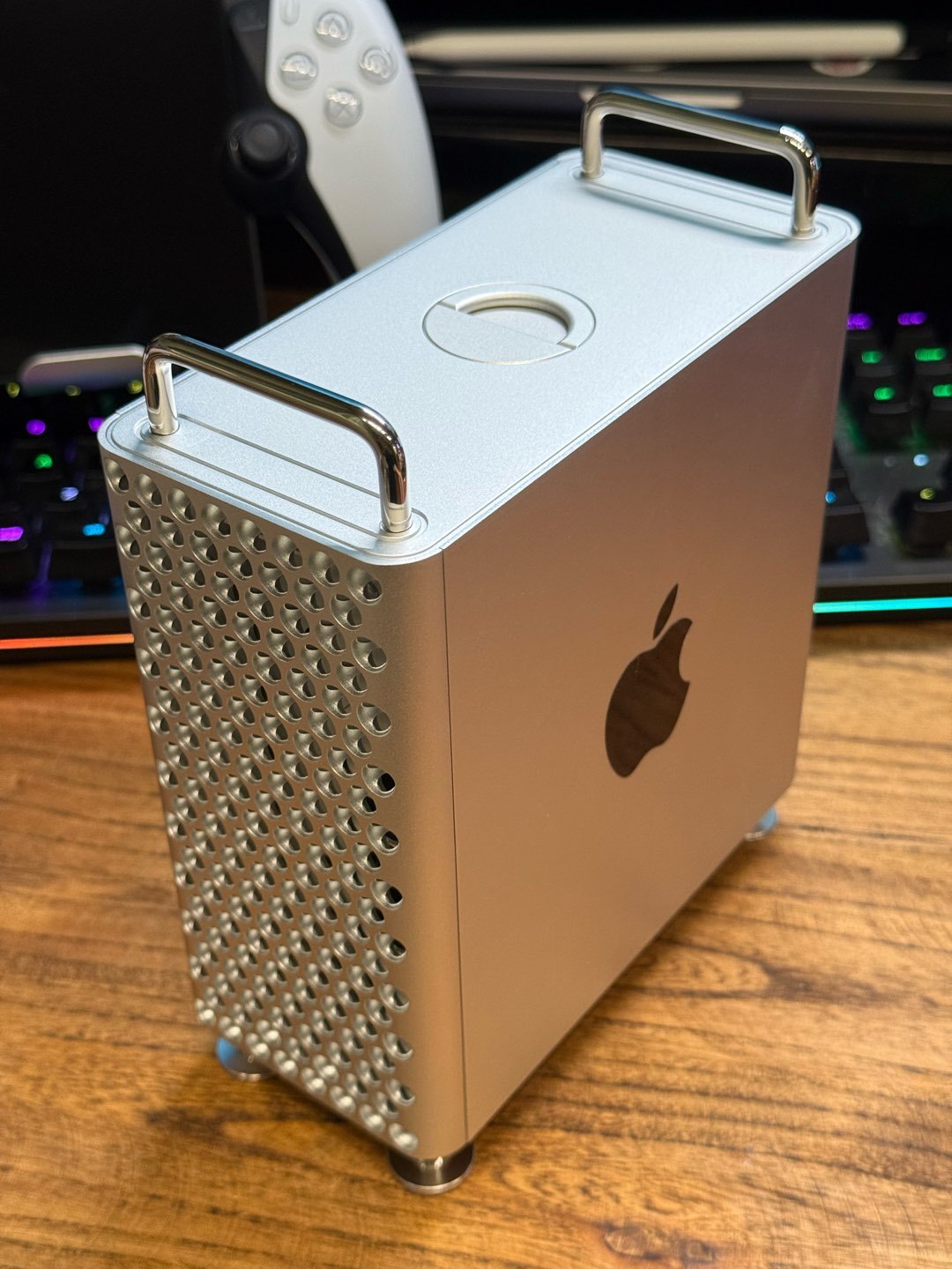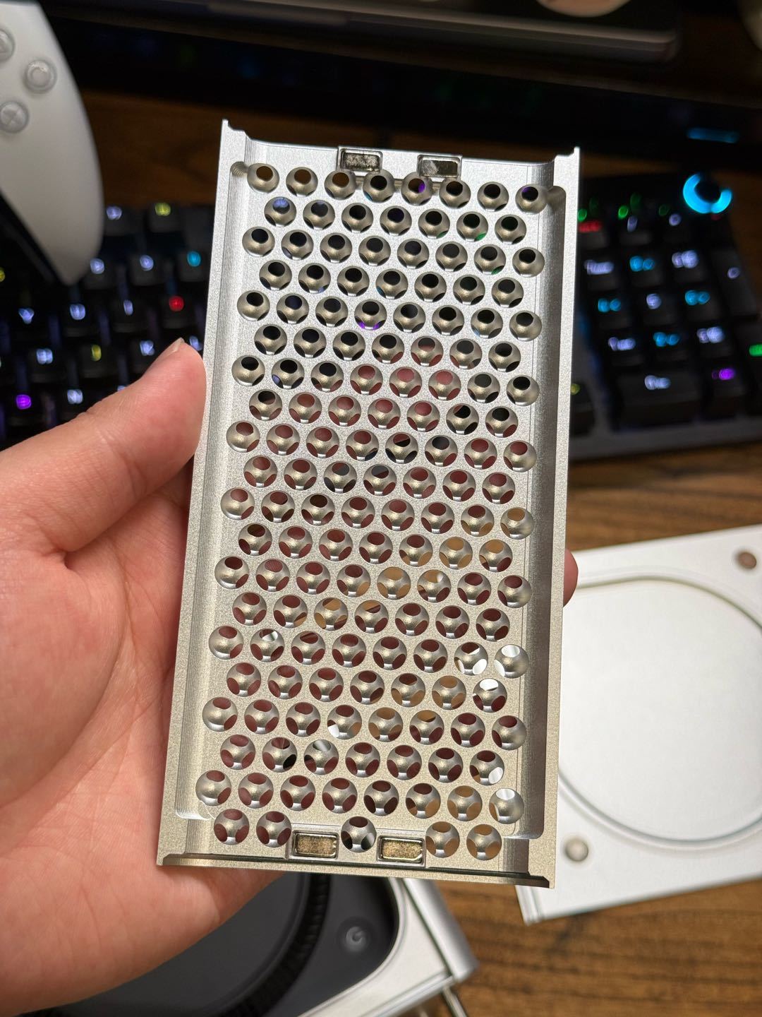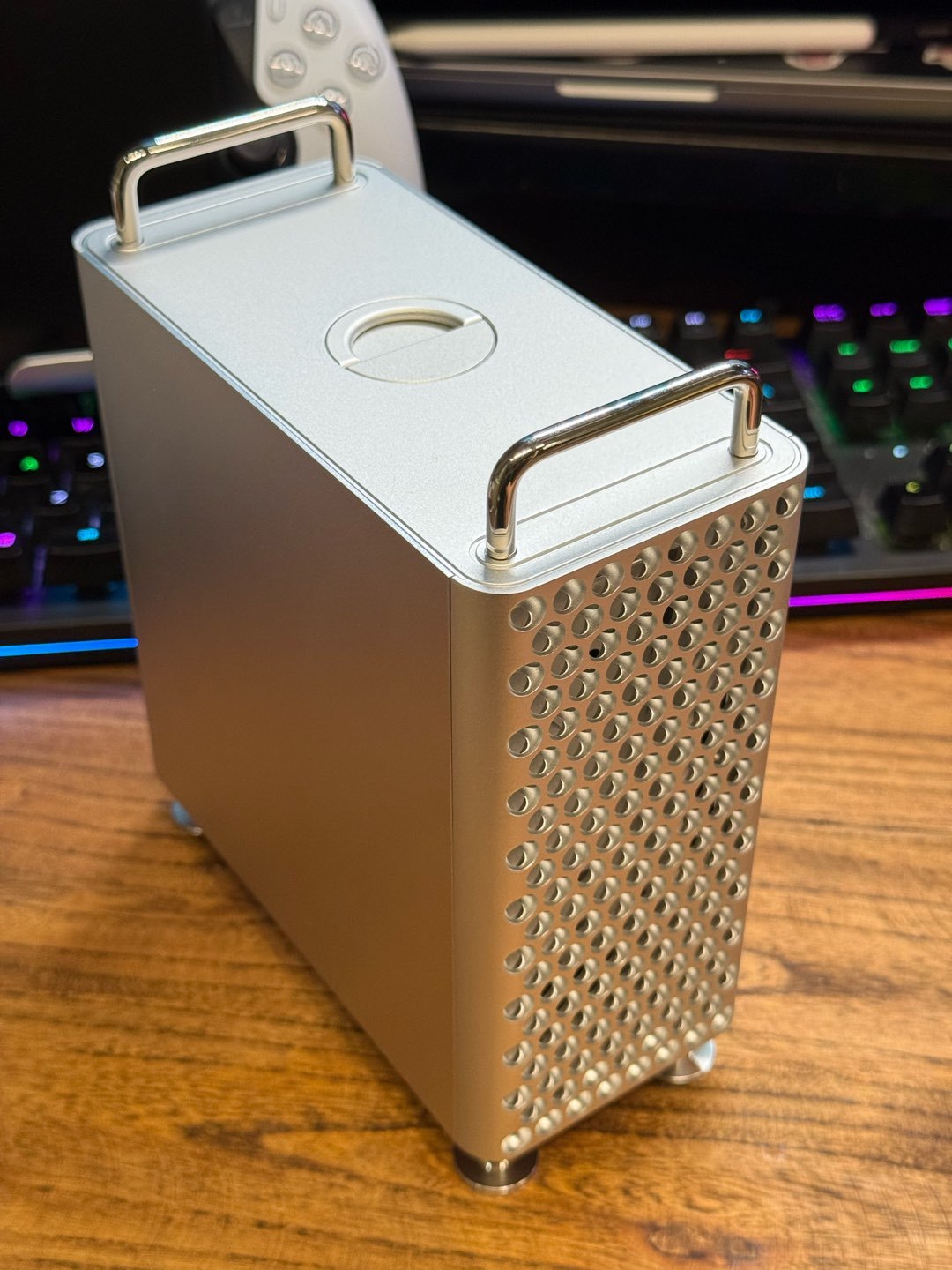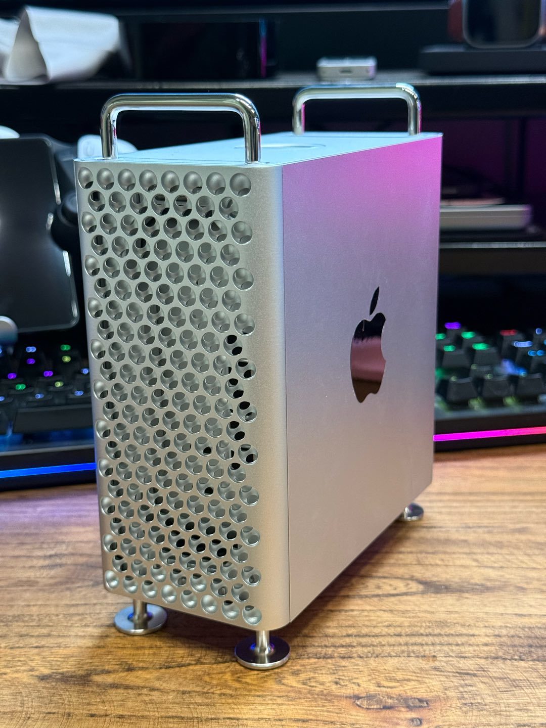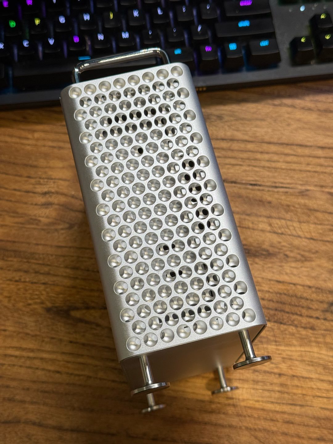 其中玩CNC的有一家工作室,設計了一套磁吸玩法的方案,樓主一眼就相中了,參加了第一批的早鳥衆籌,等了一個月,期間經歷了刨絲器工藝的變更,從一開始的半圓升級爲內外雙半球,真正做到了1:1還原mac pro,今天終於等到它,下面就來鑑賞一下。