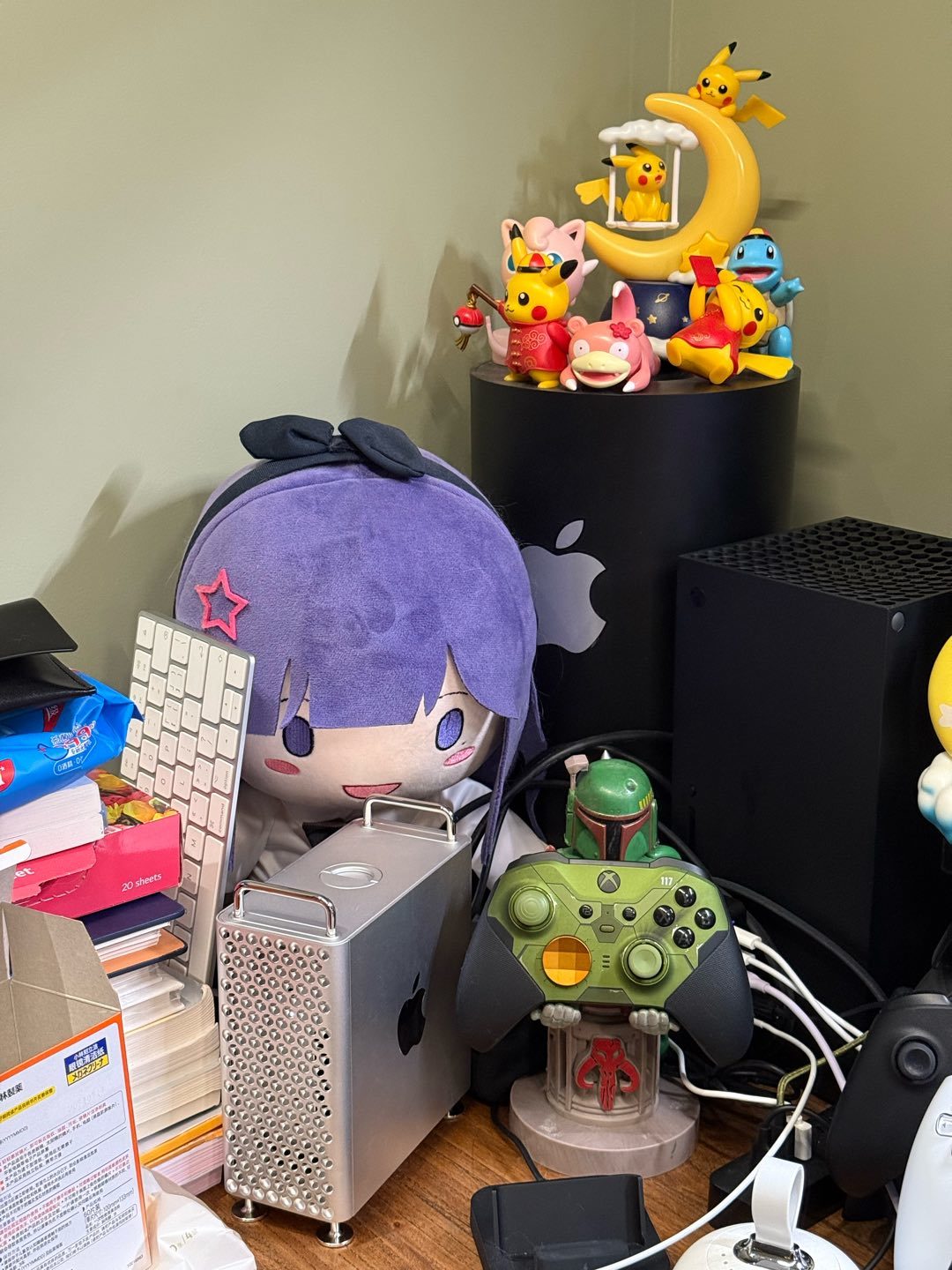 2024款m4 mac mini使用了全新模具,樓主首發也搞了一臺,原本打算放在客廳當機頂盒使用,但是發現這貨高度略厚,而且頂部放不下PS5攝像頭和小miku,就讓m1 mac mini繼續服役了,這臺放到書房跑點小服務完事兒。