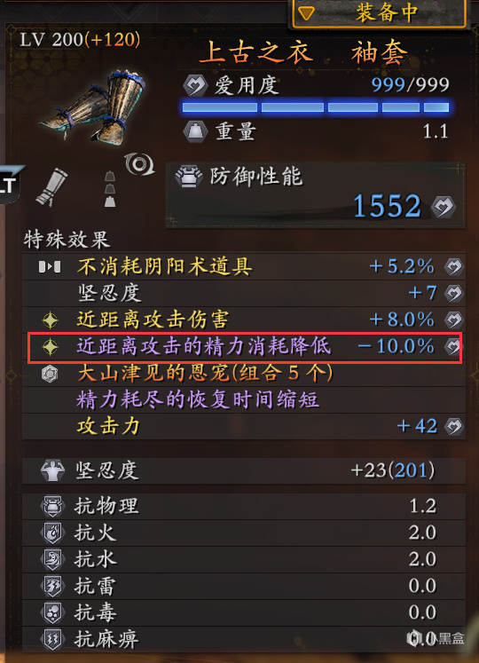 近戰必備,降低20%精力消耗並且降低其他減緩精力恢復效果的效果,有了這個精力就會耐用許多。純遠程丟符或者少近戰如忍術流可以不考慮