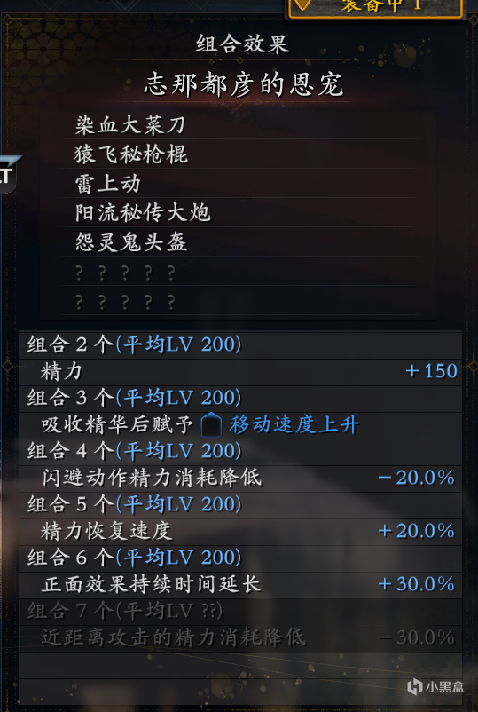 旋棍的奧義劫火是一個持續時間只有兩秒的得罪了安田文彥的奧義,命中15下疊滿,幅度爲40%buff增傷,對於旋棍這個天生鈍器導致0.8倍傷害修正的武器而言相當重要,但持續時間只有兩面會導致一旦攻擊有較長斷檔就必須重新疊層,最尷尬的就是有時候讓攻擊斷檔就是因爲需要續混沌,一旦妖怪技演出過長,或者幻術取消失誤按妖怪技取消劫火就會斷掉,輸出掉一大截,非常尷尬。根據個人測試,有地獄道的情況下,常用的妖怪技裏,在打一刀續上劫火後使用雷神,必須立刻普攻才能續上劫火,否則會掉;兩面宿儺則是妖怪技結束(即變回人形)時劫火剛好消失。爲了解決兩面宿儺的問題,我盯上了志那都彥6的30%正面延長,經過測試,加上志6的30%後兩面宿儺結束後劫火仍然還在並且還有比較富裕的時機打擊續上,整體而言劫火的保持也更加寬鬆,手感比較好。志套的套裝詞條效果相當有用,3件套也有吸收精華賦予移動加速,還有降低閃避消耗精力和增加精力恢復的詞條,相當實用。然後選擇山作爲減傷套裝。