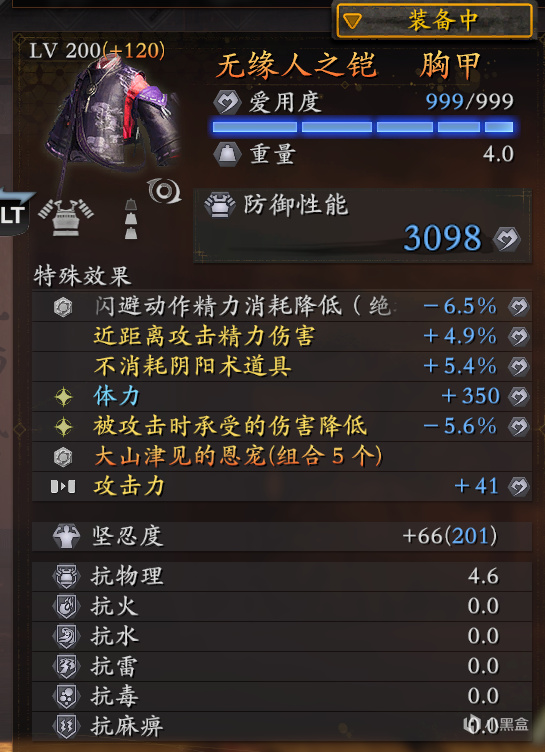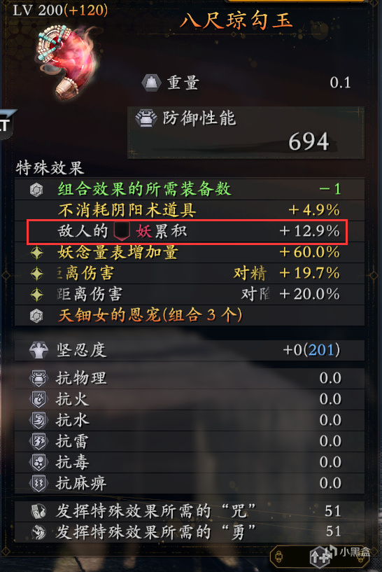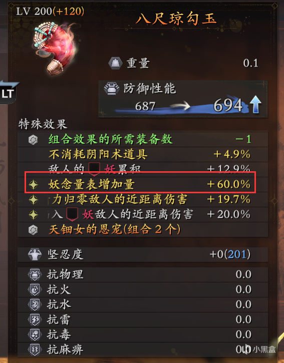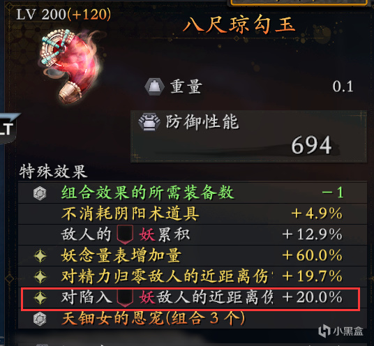 • 第二是怨靈鬼頭的固有詞條,傷害反映(承受傷害量),這個詞條並不是只有捱打才能累積,怒鬼一擊對自己造成的傷害也能累計,累積受到21000左右的傷害就能達到滿值約16.9%詞條增傷,防具上的增傷詞條僅有這一家有這個幅度,並且觸發簡單,效果持續到拜神社以及真正死亡爲止,替身術下來也不會清零,其實相當有價值,但怨靈鬼頭是一個重甲頭,需要考慮負重控制;