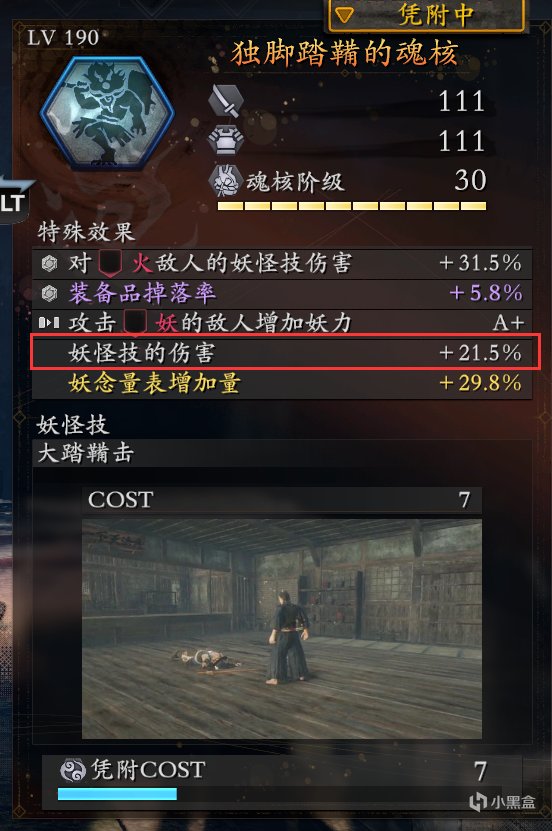 此妖怪技命中賦予防禦力提升——20%——魂核詞條