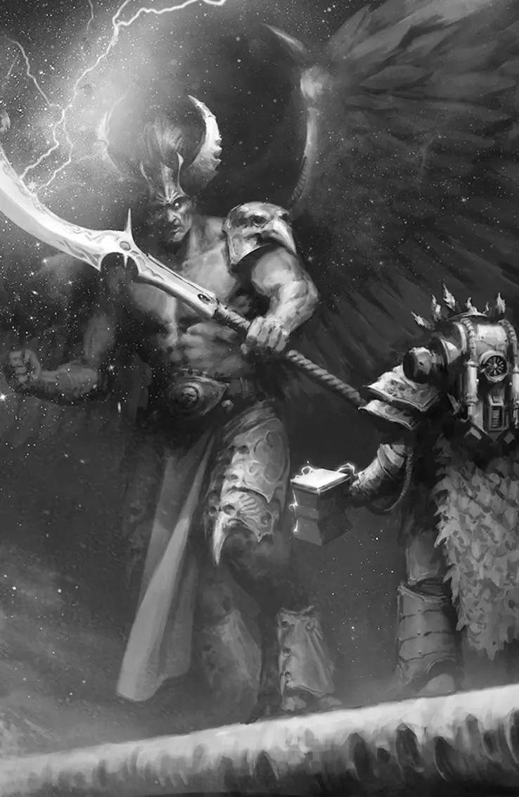 同时,密教(一个由各个种族反混沌魔怔人组成的组织)想要帮助荷鲁斯获胜以此让混沌和人类同归于尽,他们派出了特工永生者约翰·格拉马迪库斯让他把一块特殊的灵能雷电石交给科兹以此杀死伏尔甘。但是约翰被一位灵族先知说服以自己的永生能力为代价自己用雷电石杀死了伏尔甘,从而避免了伏尔甘失去永生能力。事后,基里曼认为伏尔甘已经完全死亡,火蜥蜴的战士准备将自己父亲带回夜曲星。