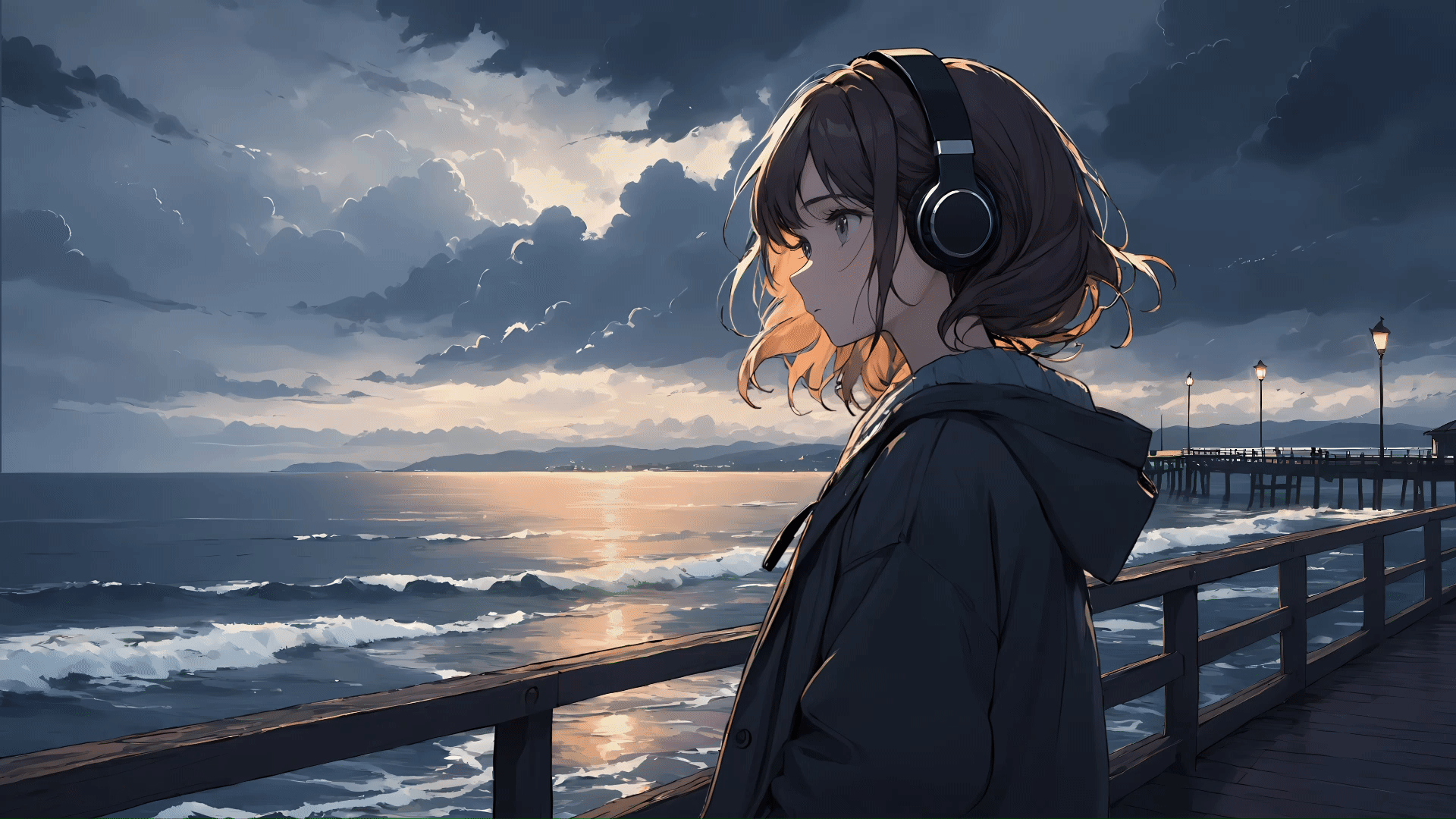 5、Girl with headphones|Sea berth|[4k]