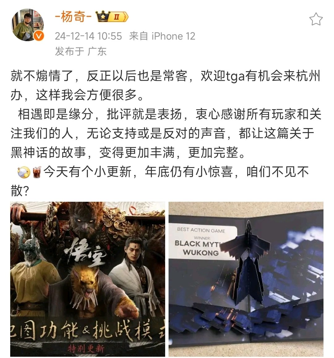 杨奇微博透露年底还有小惊喜