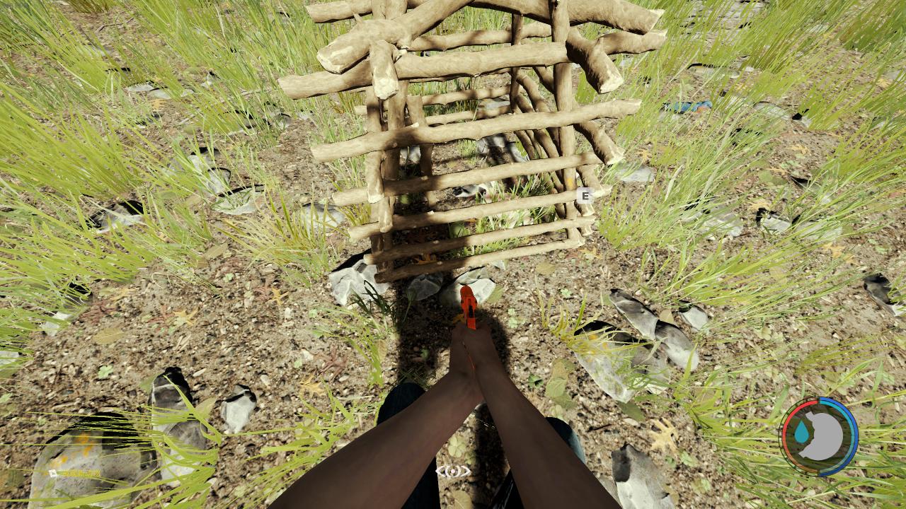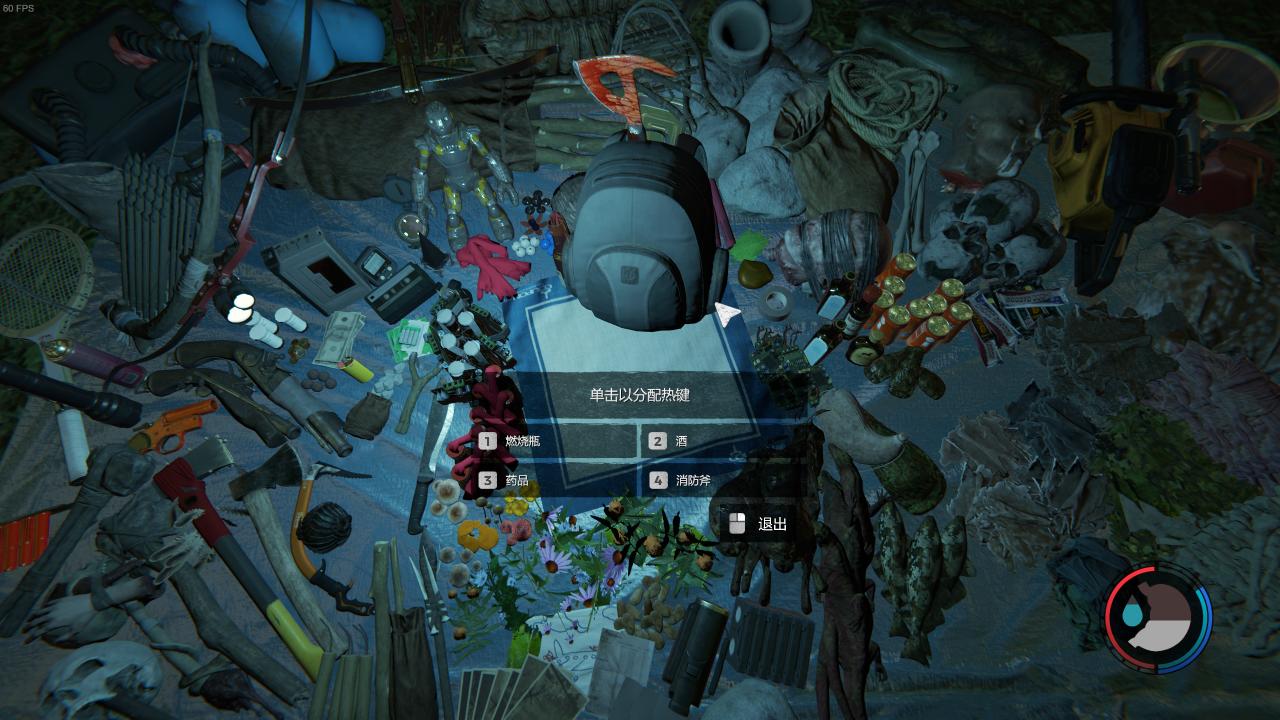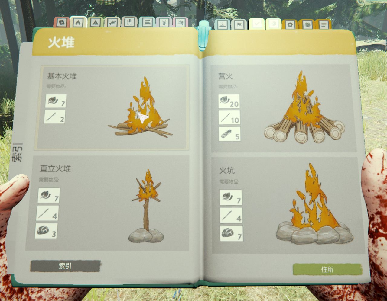 注意下面方法適用於單人模式,多人模式請不要嘗試!單人在搜完行李箱後先不急着找武士刀,先找方法自殺。推薦自殺方法:按B打開建築建造書,在裏面找到基礎火堆就下圖這個,建好後站在上面炭烤人肉被燒死。