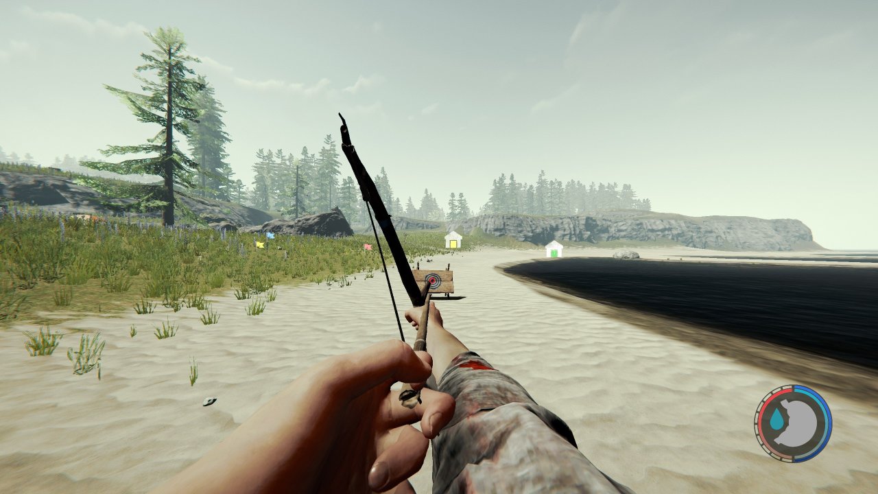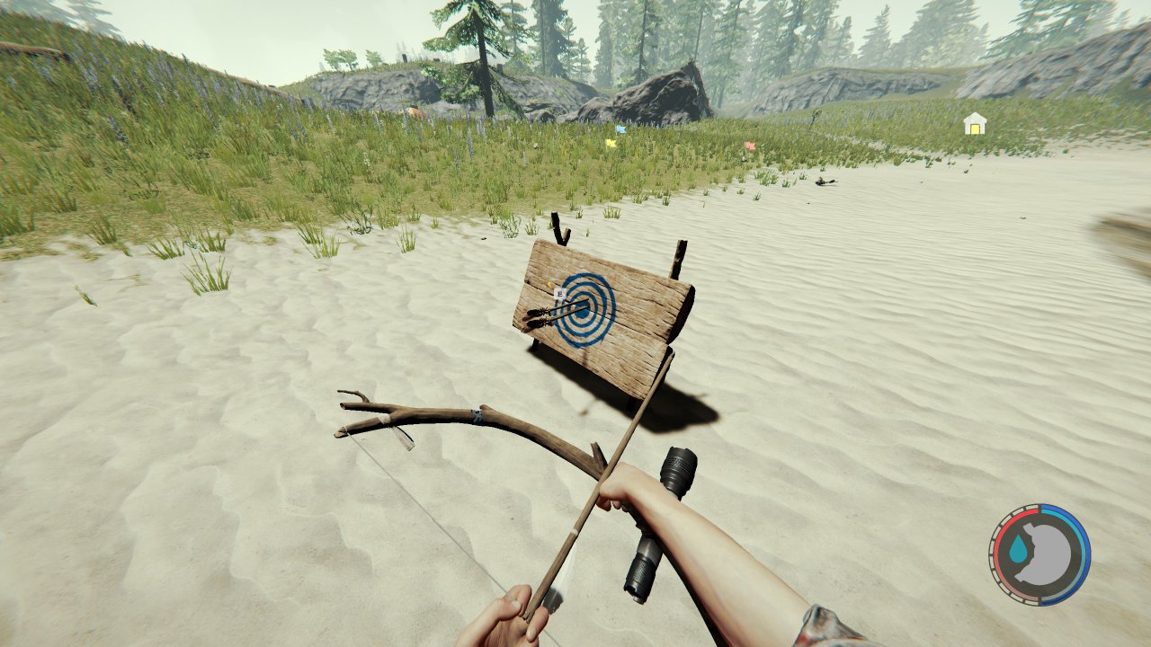 其次是緊緻弓和現代弓,現代弓沒有準星但傷害高適合老鳥,精緻弓適合萌新搭配現代箭也有不俗的傷害。所有的弓箭打頭都是一箭秒,所以建議盒友們瞄準點。現代弓就不贅述,精緻弓如何瞄準?基本就是伸出來的樹枝靠右上角的一小塊,如圖。