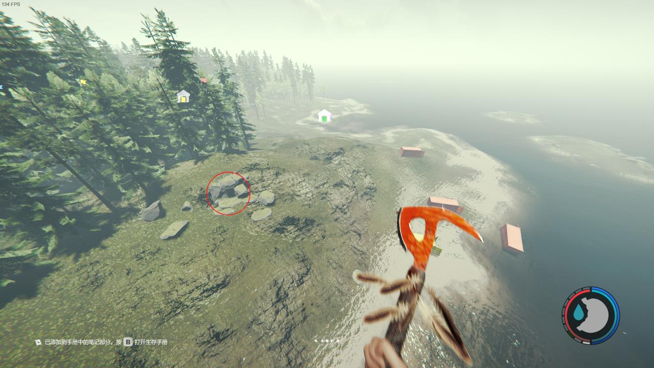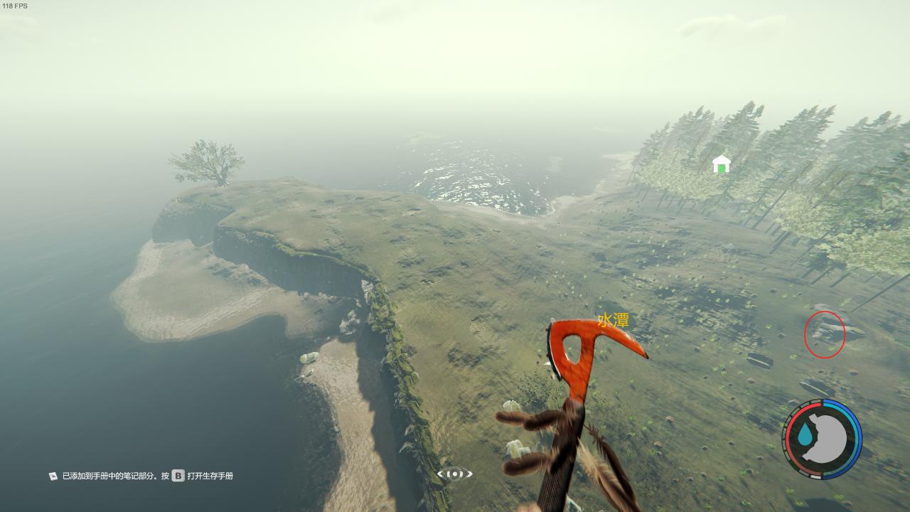 用斧頭把自己救下來後可以在旁邊的地上找到指南針和地圖,對於萌新很有用。