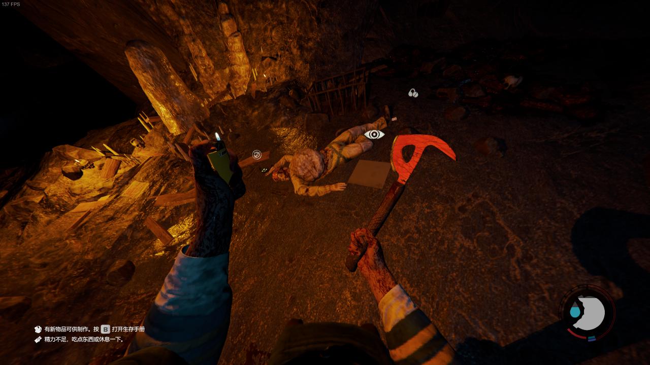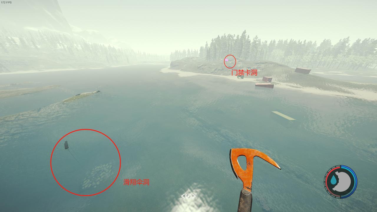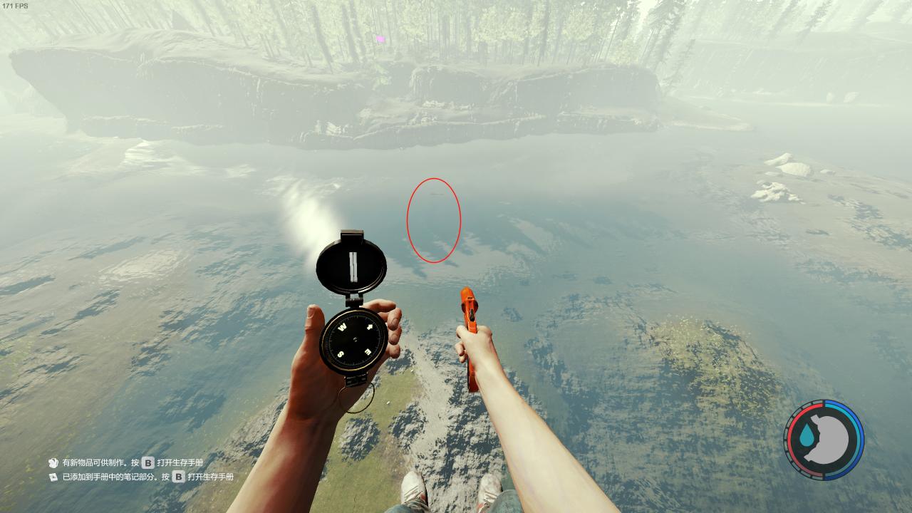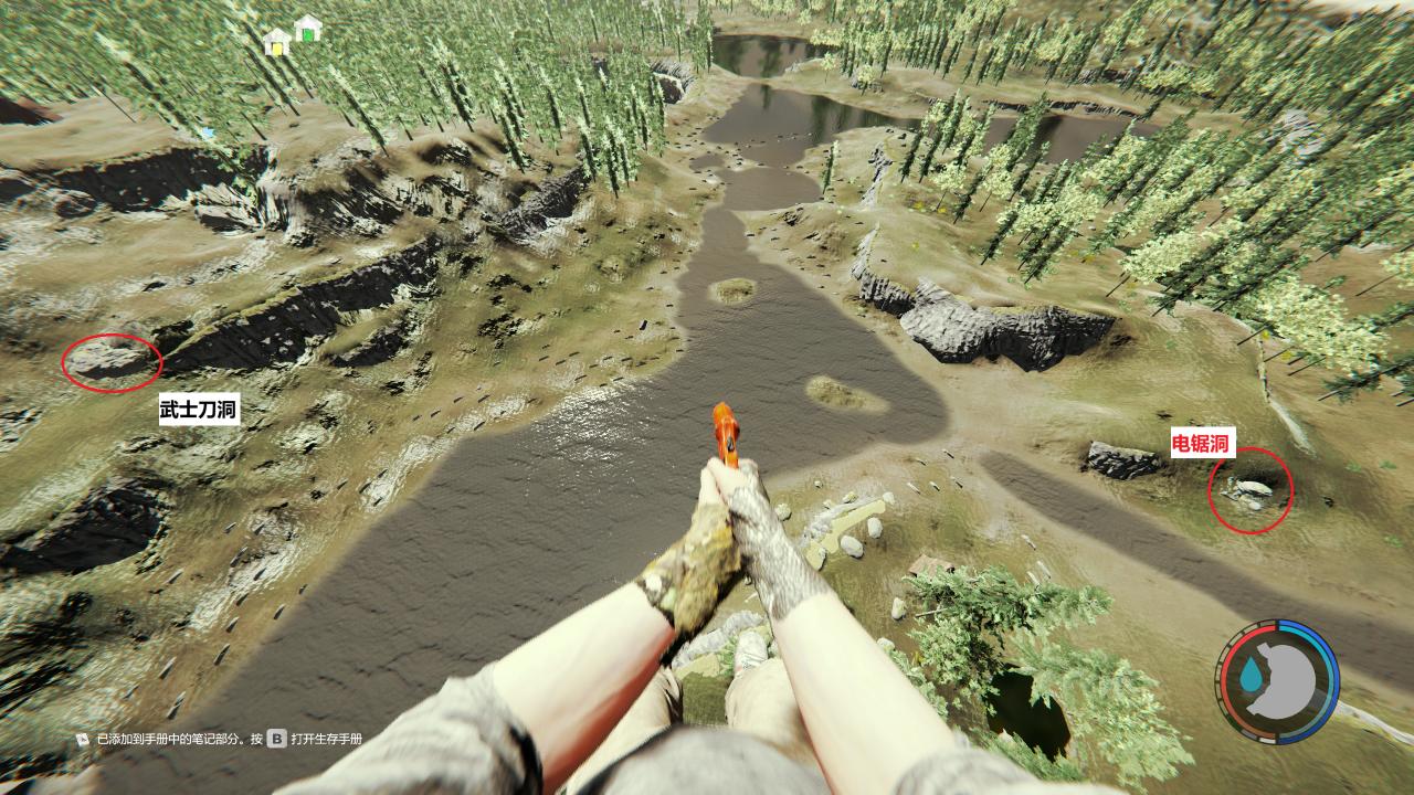 講一下森林的重生機制,這遊戲的單人模式在第一次死亡時會被拖到指南針地圖洞,也就是下文我所要講的地方,再死一次就需要讀檔了。而多人模式死亡會直接在飛機上重生並且裝備會丟在原地。