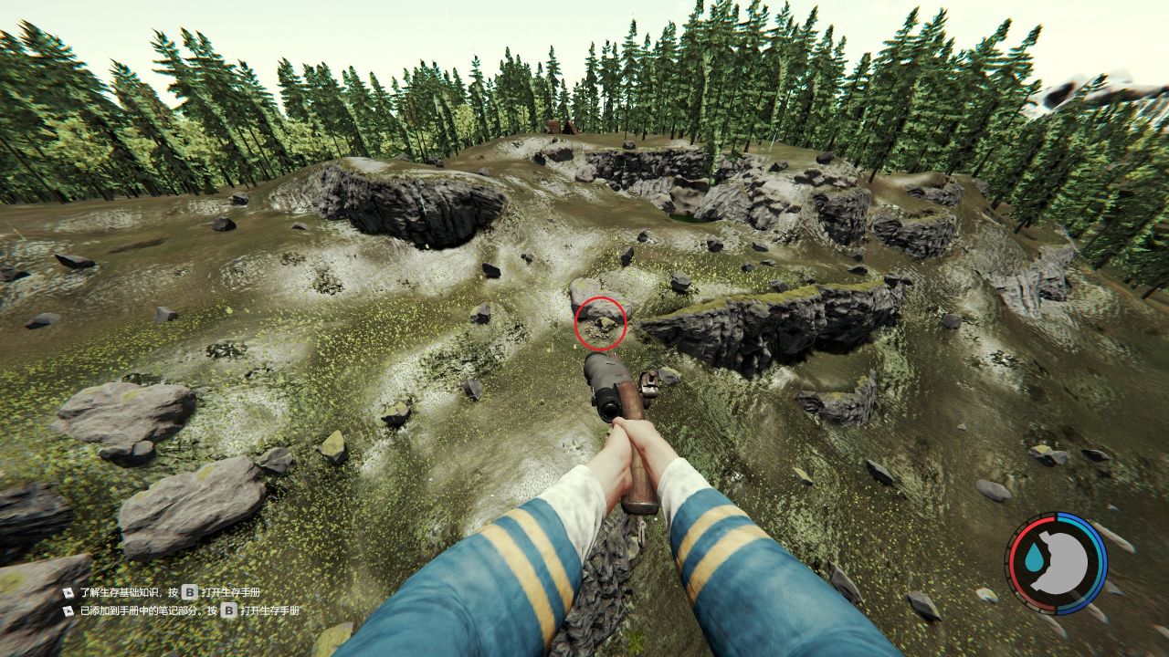 這東西只要下雨就會蓄水,建議多造幾個就會有喝不完的水。想要帶走這些水,可以在揹包中用兩個鹿皮和一個繩子合成一個水袋,合成後手裏拿着水袋對着蓄水器按互動鍵就可以裝水了。同時揹包裏的蘇打水也能補充水分,在下洞的時候可以拿點以便路上喝。