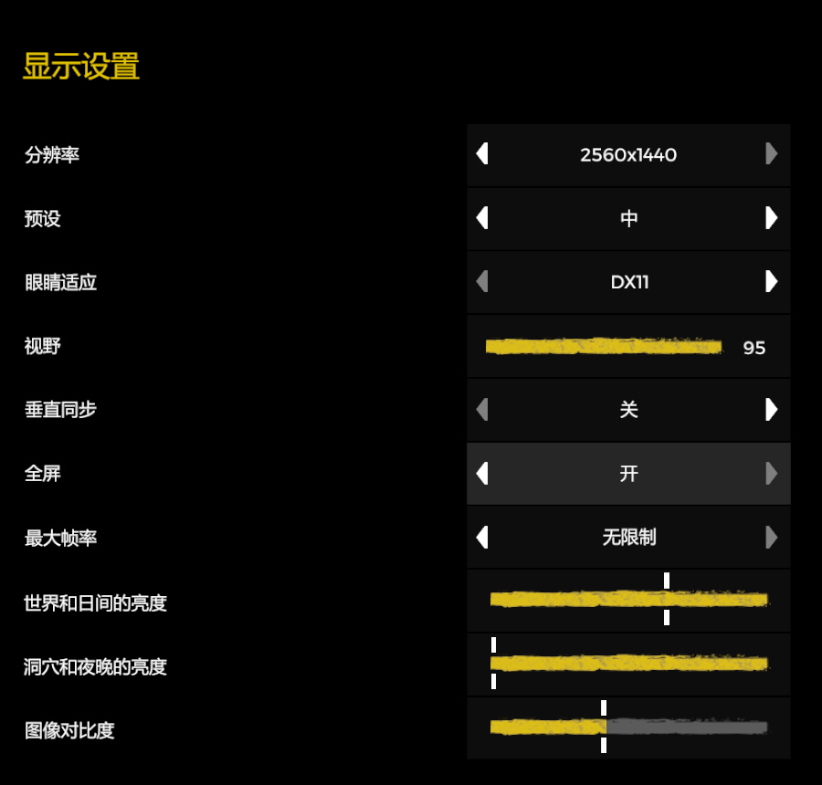 首先是設置,推薦視野拉滿,拉滿後可以多獲取信息並且會讓你產生人跑的快感覺,這個看個人喜愛。其次是“世界日間亮度”和“洞穴夜晚亮度”這兩項建議拉滿,世界那個看個人,在地面白天覺得亮可以拉低點,洞穴那個一定要拉滿玩起來會舒服很多很多。