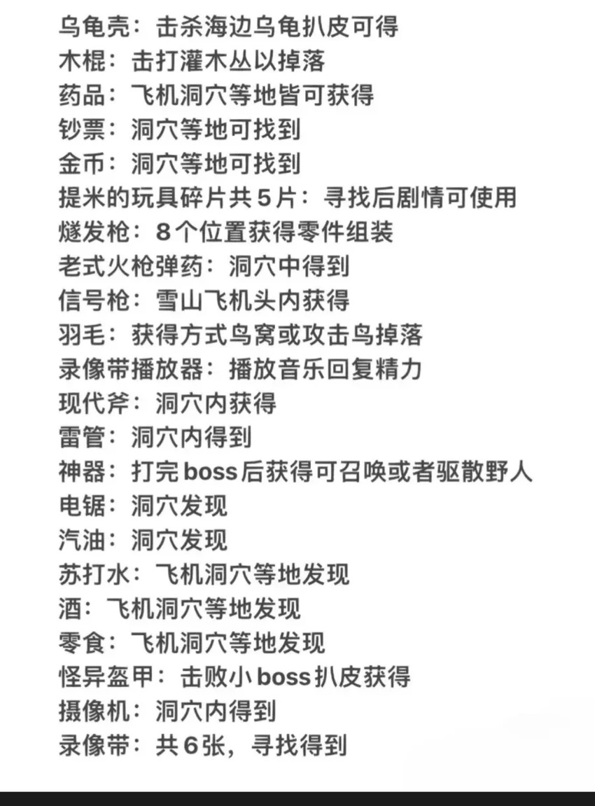 講一下多人遊戲的刷物品bug,揹包中必須要有金屬錫盤這個東西,錫盤可以從多人模式的飛機尾部拿去(單人開作弊能拿出來)。首先你要確保你想刷的物品擁有31個及以上,右鍵托盤隨後放31個你想刷的物品上來,按G刪除所有,這樣一次就刷好了30個。這個bug大部分東西都可以刷,子彈、布、樹脂、牙齒等。