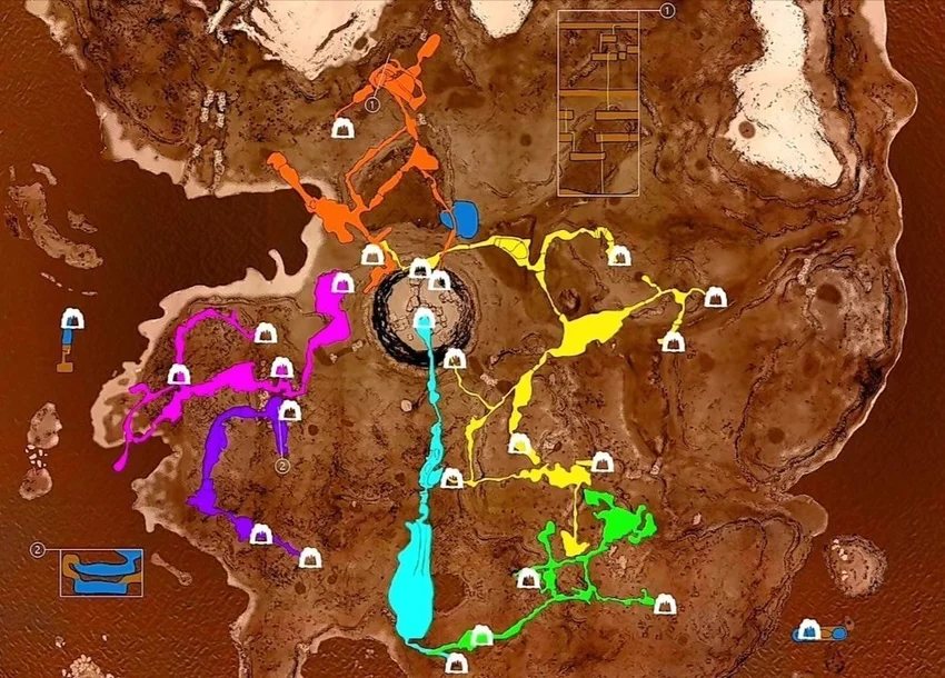 我不推薦萌新在地表時使用遊戲內自帶的手繪地圖,那個描繪的真是一坨,萌新只會越看越迷糊,所以我推薦邊玩邊使用以下我所發的地圖。(如果你喜歡那樣的風格且能看懂可以無視)