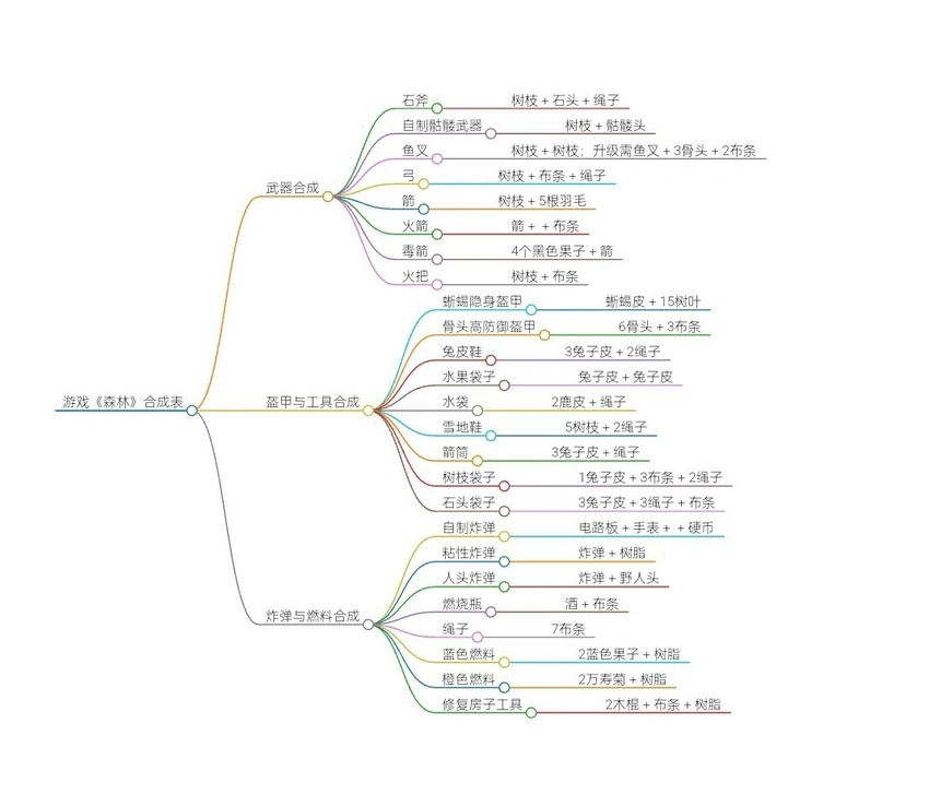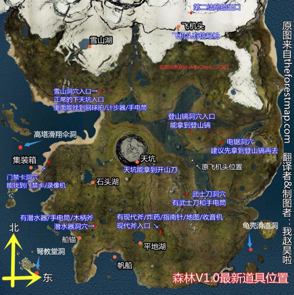 推薦邊玩邊看地圖,有很大幫助。想要更詳細的地圖可以去這個鏈接 https://theforestmap.com/