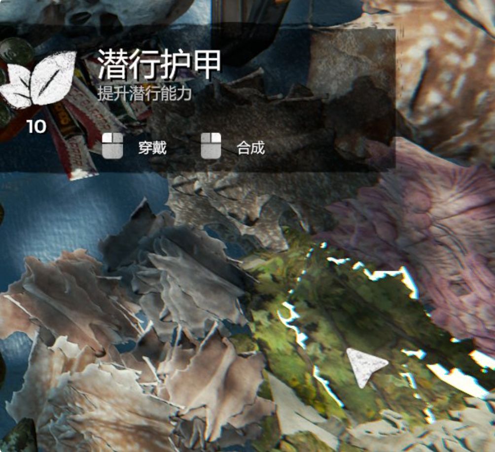 草甲(護甲值低,由蜥蜴皮+草合成,可以增加潛行度,讓怪物不容易看見你)