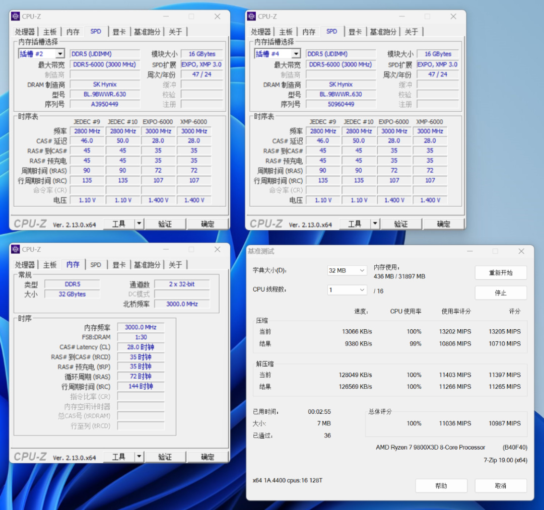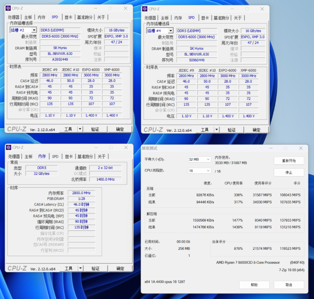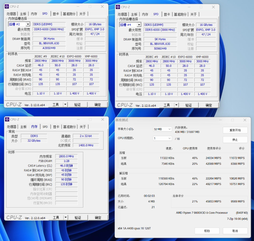 原生5600MHz,7z解壓縮測試,多線程解壓縮評分可以達到119523MIPS,單線程解壓縮評分可以達到9569 MIPS;