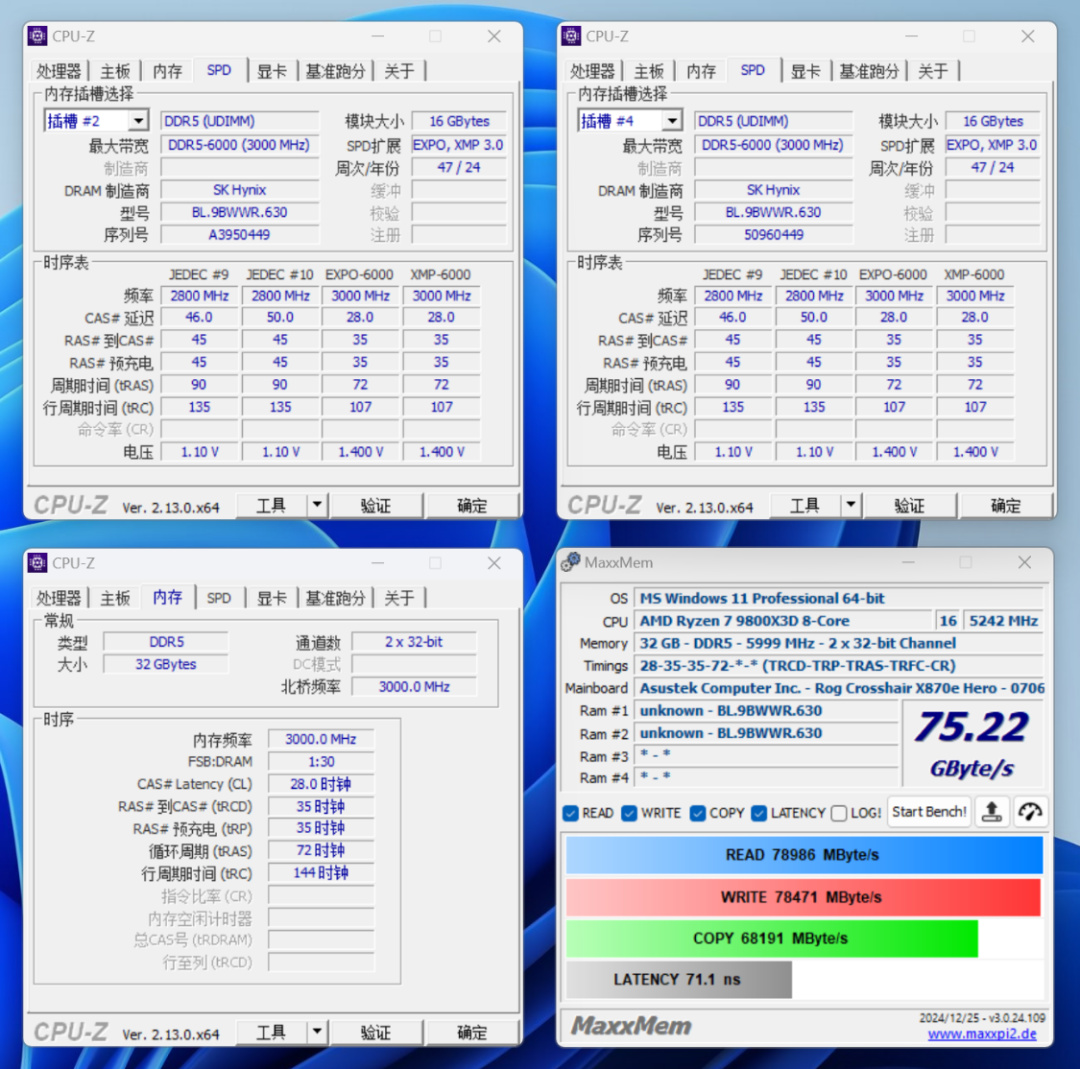 EXPO至6000MHz後,內存讀寫帶寬爲75.22GByte/s;