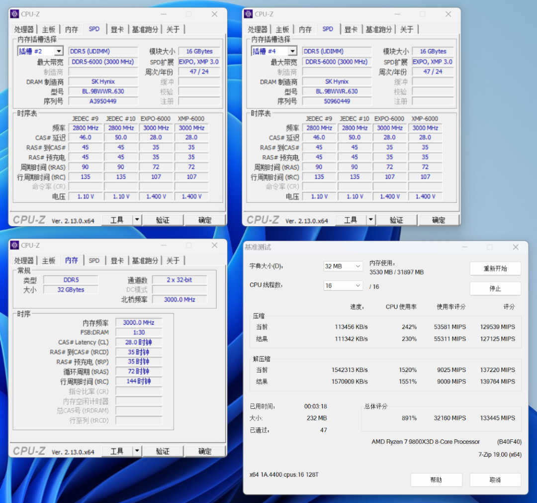 EXPO至6000MHz後,多線程解壓縮評分可以達到133445MIPS,單線程解壓縮評分可以達到10987 MIPS;