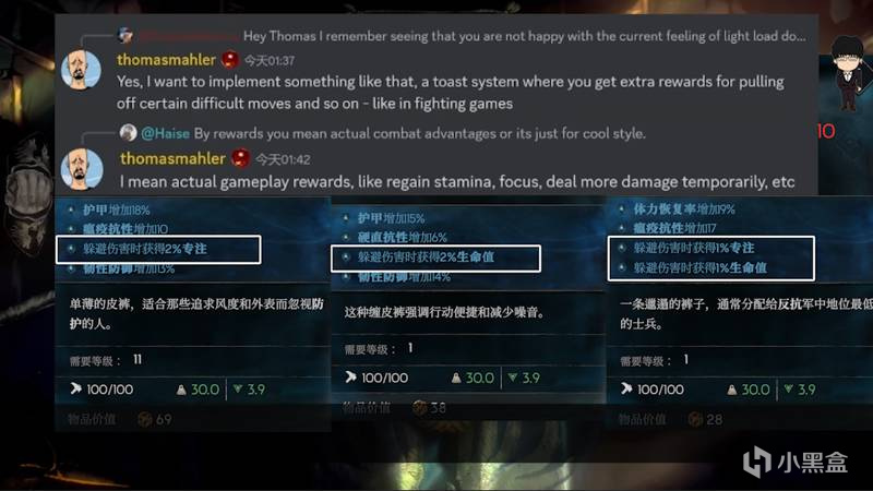 閃避機制會在未來進行調整。完美閃避狀態下目前版本可供玩家恢復1-2%的生命和專注度,官方會在未來提供更多詞條來鼓勵玩家嘗試完美閃避操作。符文技能方面除了目前可佩戴的弓箭可持有4個技能外,其他對應盾牌和未來會添加的寶珠、菸斗等設定裝備也會有對應符文技能,盾牌技能Thomas已經明確表示。也就是說,未來版本玩家可攜帶的符文技能數量最多可以有24個。不過這方面的設定與單雙手武器掛鉤,無法切換副手的武器同樣也不能施展對應符文技能