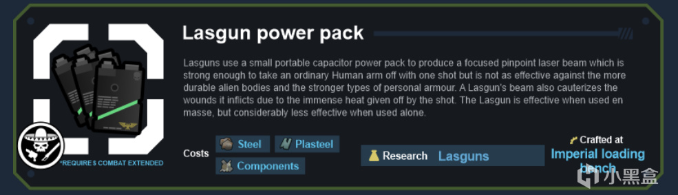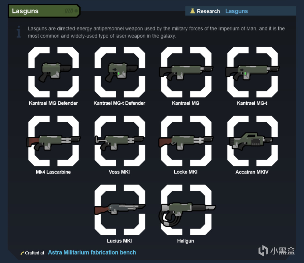 激光槍是由人類帝國軍隊廣泛使用的定向能量反人員武器,它是銀河系中最常見、使用最廣泛的激光武器類型。