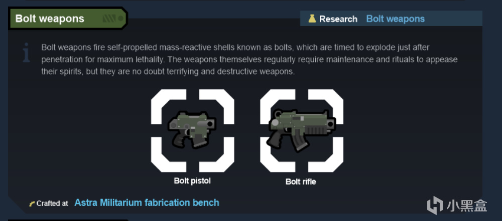 爆彈武器發射自推進的質量反應彈(稱爲爆彈),這些彈藥在擊中目標後會爆炸,以實現最大殺傷力。這些武器需要定期維護,並通過儀式安撫其“機魂”,但它們毫無疑問是令人恐懼的破壞性武器。