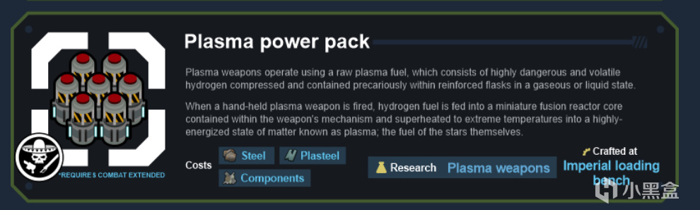 等離子武器通過使用原始等離子燃料來運作,這種燃料由高度危險且不穩定的氫氣組成,氫氣被壓縮並危險地儲存在強化瓶中,以氣體或液體狀態存在。當手持等離子武器開火時,氫燃料被送入武器內部的小型聚變反應堆核心,並被加熱至極高溫度,轉化爲一種高度能量化的物質狀態——等離子,正是恆星的燃料。