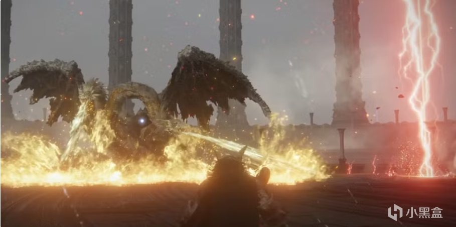 在逐漸崩毀的法姆·亞茲拉的“盡頭”,壯觀的景色盡收眼底——一系列搖搖欲墜的平臺,蜿蜒向下,直達漩渦的中心,在中心的龍王緩緩張開身軀迎接戰鬥。這條龐大無比的雙頭龍會噴火、會從天空召喚紅雷,甚至會化作霧氣在戰場上瞬移。雖然遊戲中其他所有龍的戰鬥都允許騎乘戰鬥,但唯獨普拉頓桑克斯卻不允許,戰鬥難度也因此直線上升。