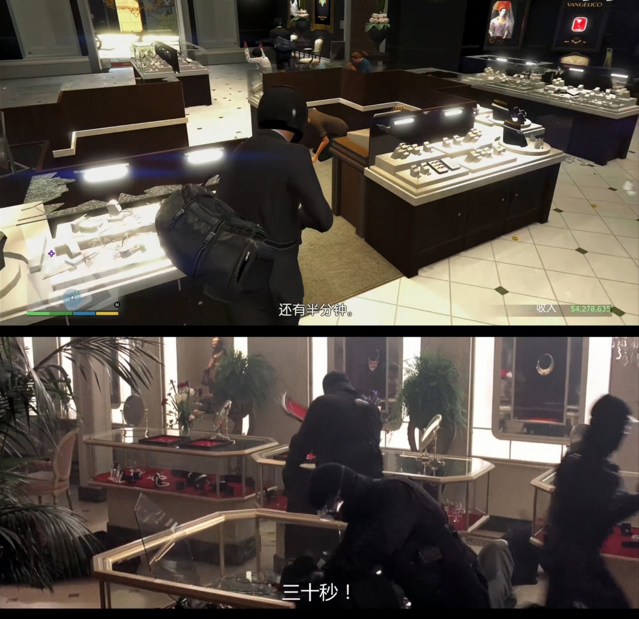 在時間結束前拿取儘可能多得財物,將範傑莉卡珠寶店洗劫一空。
