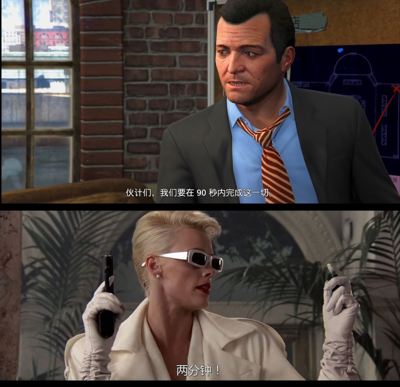 在《俠盜獵車手V》故事模式作爲麥克重出江湖的開門紅和新人富蘭克林人生第一票的“珠寶店劫案”任務中,對《比弗利山超級警探2》其他地區又譯《妙探出差2》的前段部分進行了借鑑和還原,其中包括人物對白和情節安排以及珠寶店的部分場景設計等。
