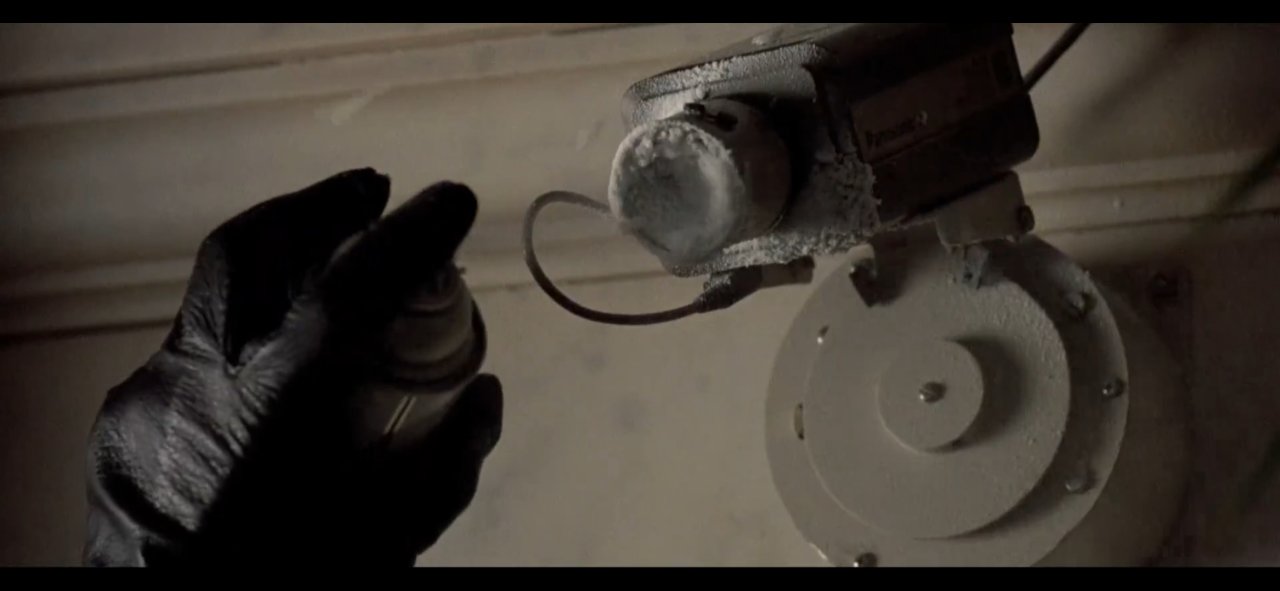 利用泡沫噴漆“黑入”閉路電視的橋段。