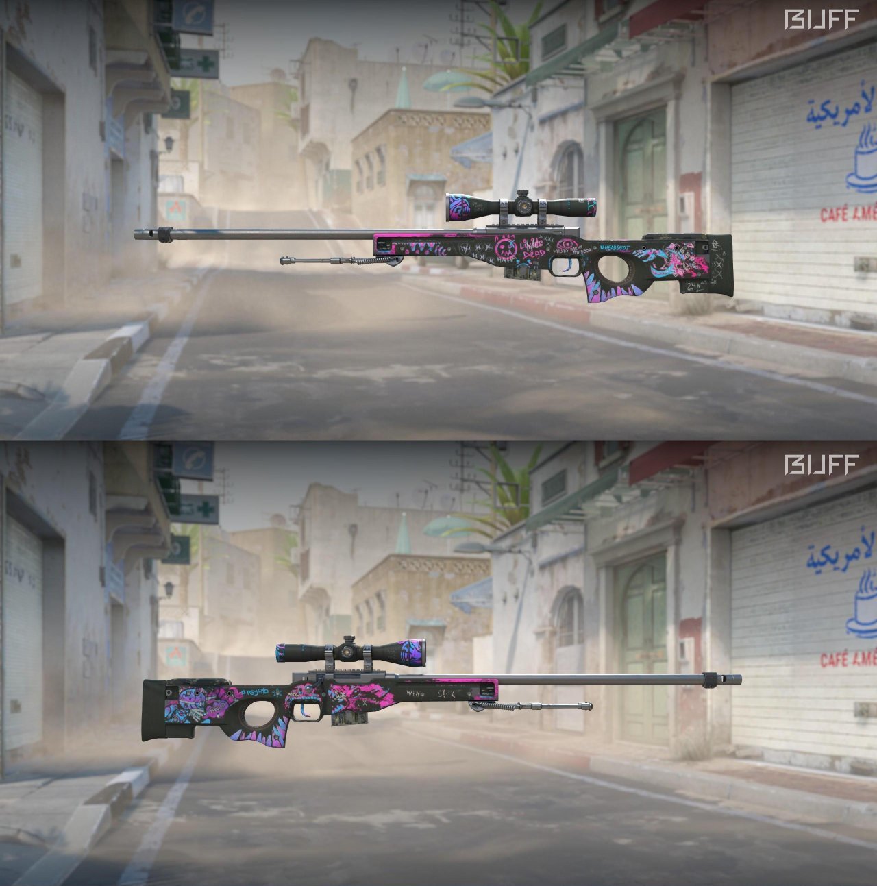 涂鸦风格的一款枪皮,同时也有一种赛博的感觉,粉紫色的配色还是很好看的,局内效果也还行,有些吃磨损,亮度会受一些影响,也会有一些刮花,推荐略磨入手,暗金(150)
